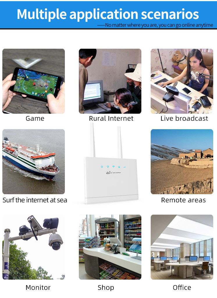 B311 on 802.11b/g/n traadita lairiba 3G/4G ruuter, millel on täiuslik kõik-ühes võrgulahendus, kasutajad saavad ühendada ja jagada kõrget 4G või kaabli / xDSL lairiba-Internetiühenduse kiirust. See multifunktsionaalne ruuter integreerib 1 10/100 Mbps Ethernet WAN / LAN pordid, samuti edastuskiiruse kuni 300Mbps ja toetab NAT tulemüüri SPI, intelligentne liiklusjuhtimise tehnoloogia ja kasutajasõbralik juhtimisliides põhineb WebUI. See võib pakkuda piisavalt ribalaiust suure ribalaiuse nõuete rakendamiseks, saab samal ajal vaadata veebivideot, kuulata digitaalset muusikat, mängida võrgumänge, edastada suuri faile, VoIP-kõnesid ja surfata veebisaidil.