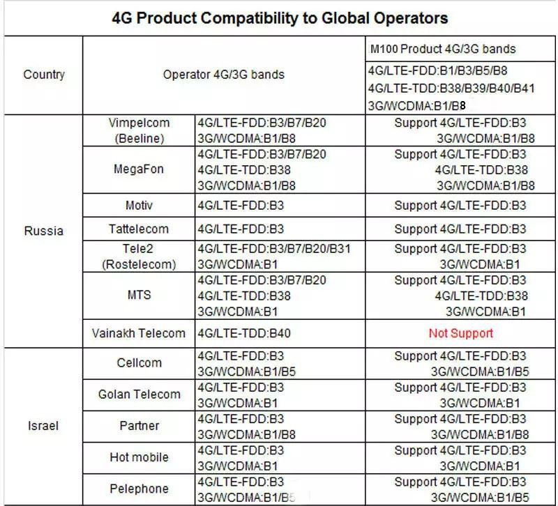 Toetatakse 4G sagedusribade kohandamist erinevate riikide ja piirkondade jaoks.