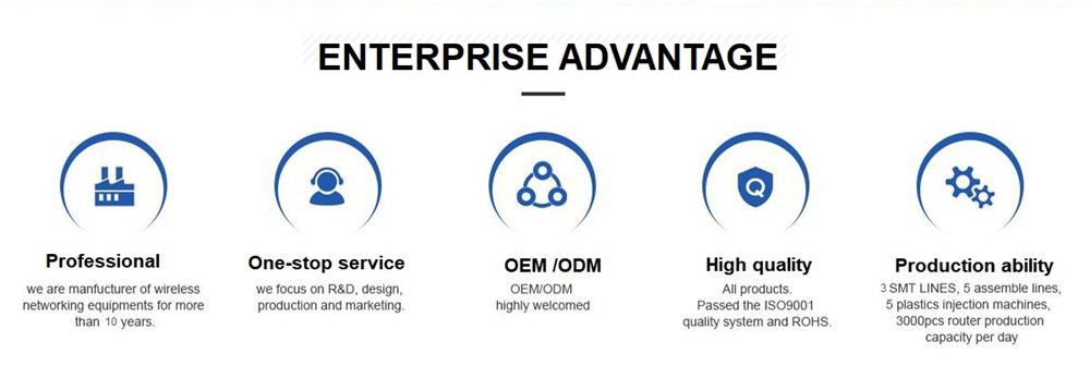Meie peamiste toodete hulka kuuluvad: 5G/4G ruuterid (MiFi, CPE-ruuter), 3G/4G traadita usb-dongle, Wi-Fi repiiter, traadita kohtvõrgu adapter, 4G antenn jne.